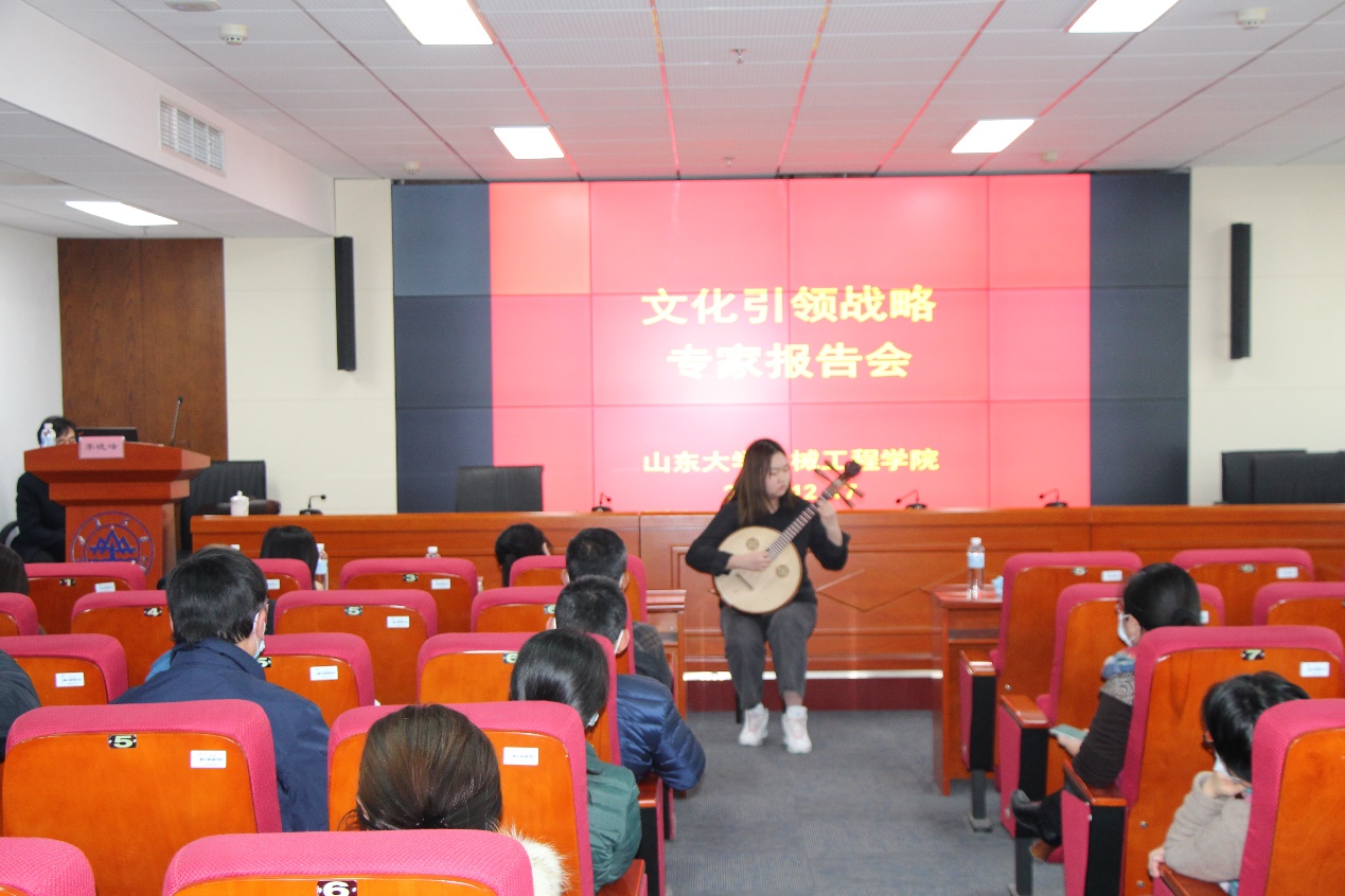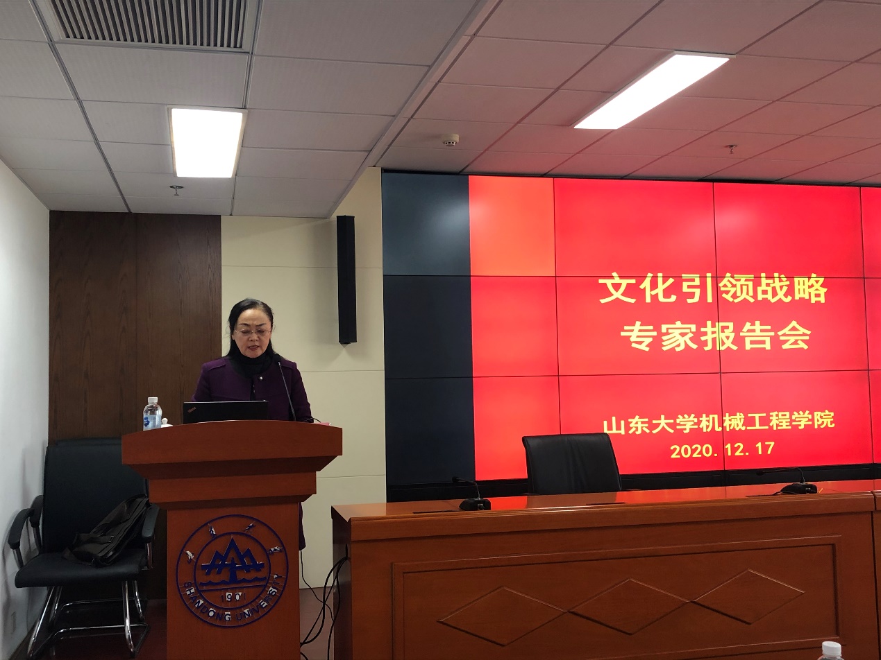 12月17日下午,机械工程学院在创新大厦1103举办了文化引领战略专题报告会,报告会邀请艺术学院党委书记、威海校区艺术学院院长李晓峰教授作了题为“百廿学府与文化引领战略”的报告。机械工程学院院长黄传真、党委书记刘杰及领导班子成员、机关全体人员、教师党支部书记、35岁以下青年教师、师生代表参加了报告会。报告会由学院党委书记刘杰主持。