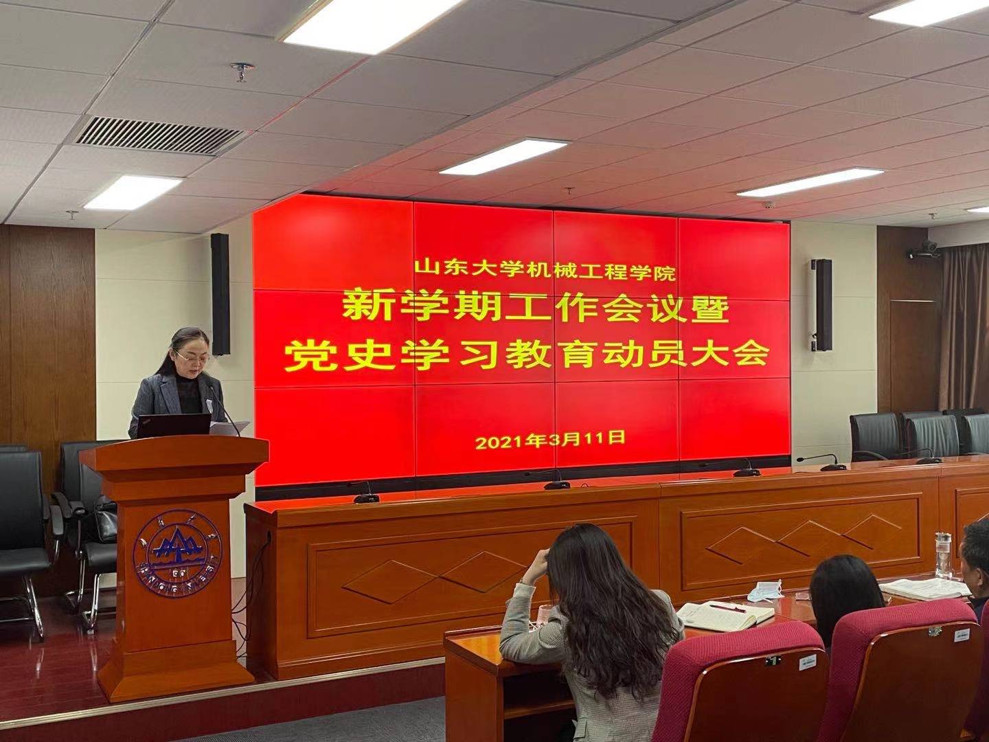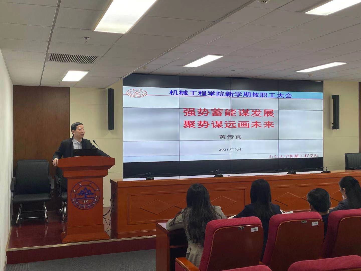 3月11日下午,机械工程学院召开全院教职工大会,传达学校2021年春季学期工作会议精神,对学院新学期工作和党史学习教育进行了全面部署。院长黄传真、党委书记刘杰出席会议并讲话。