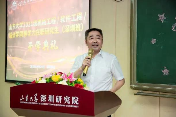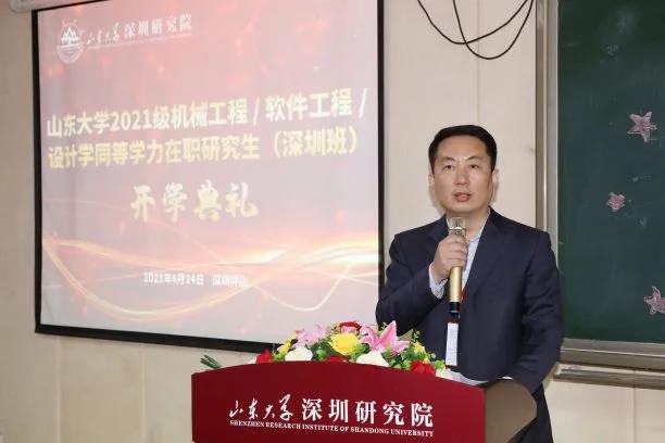 王明星向参加典礼的领导和同学表示热烈欢迎,对为此次开班付出努力的领导和同事表示衷心感谢。他介绍了深圳研究院的基本情况,研究院立足深圳九年来深耕人才培养领域,根据各领域对高端人才的不同需求,开设多个稀缺专业,为粤港澳大湾区培养了大批高层次、高学历、高水平的高端稀缺人才,为区域经济社会发展奠定了坚实的人才基础。为满足比亚迪高端人才发展的需要,加强人才储备,研究院特别定制机械工程和设计学两个专业的在职研究生。他对学员提出几点希望和要求:一是要提高站位。要胸怀国家,砥砺“以天下兴亡为己任”的担当任。要求真务实,肯下“板凳要坐十年冷”的苦功。要敢为人先,勇做“弄潮儿向涛头立”的先锋。二是要处理好家庭、工作和学习的关系。科学合理地安排时间,专注当下,做到学习好、生活好、工作好。三是要珍惜机会。大家注册后就成为山大的重要一员,山大有60余万校友,资源丰富,大家要多学多思多交流,用足用好这个平台。在各位领导和同学们的大力支持下,研究院将尽最大努力做好教学和服务管理工作。
