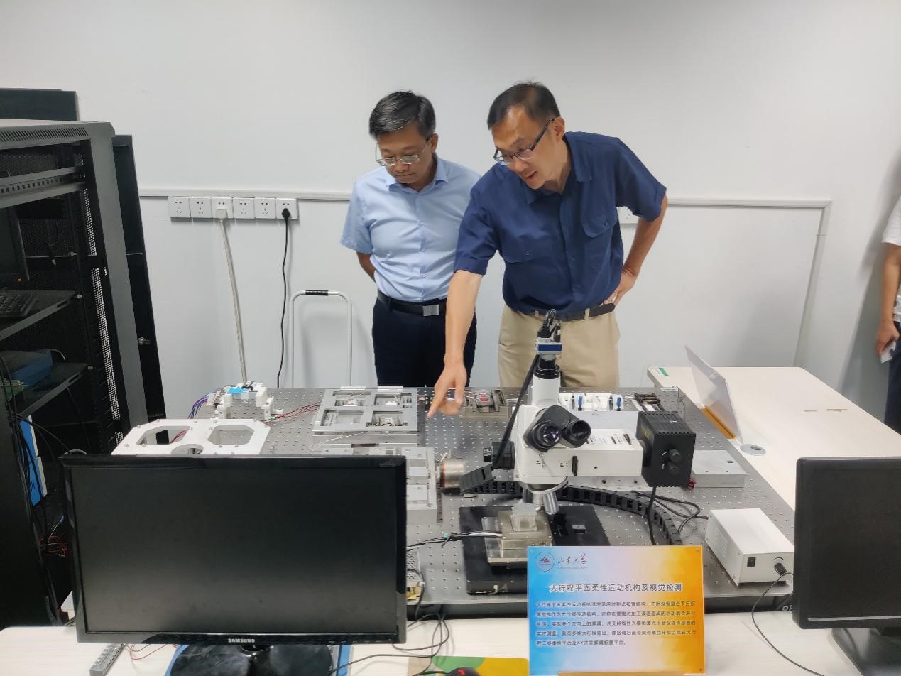 日照高新区科技与经济发展局、党政办、日照高新发展集团、高新区科技与经济发展局负责人、yl23455永利官网领导班子成员、山东大学日照智能制造研究院院长张进生、北京玉研精密仪器有限公司总经理等参加了座谈调研及实验室考察活动。