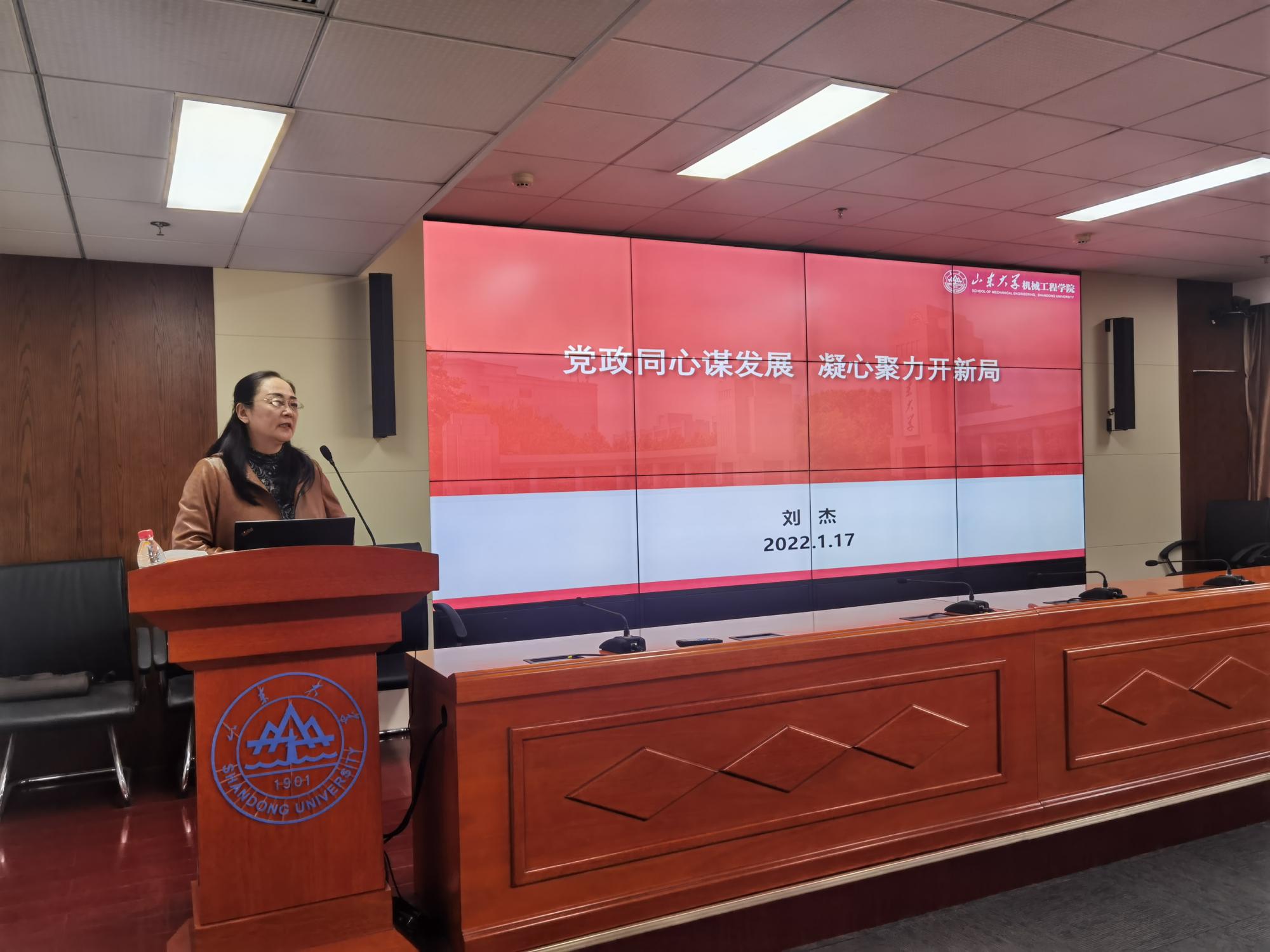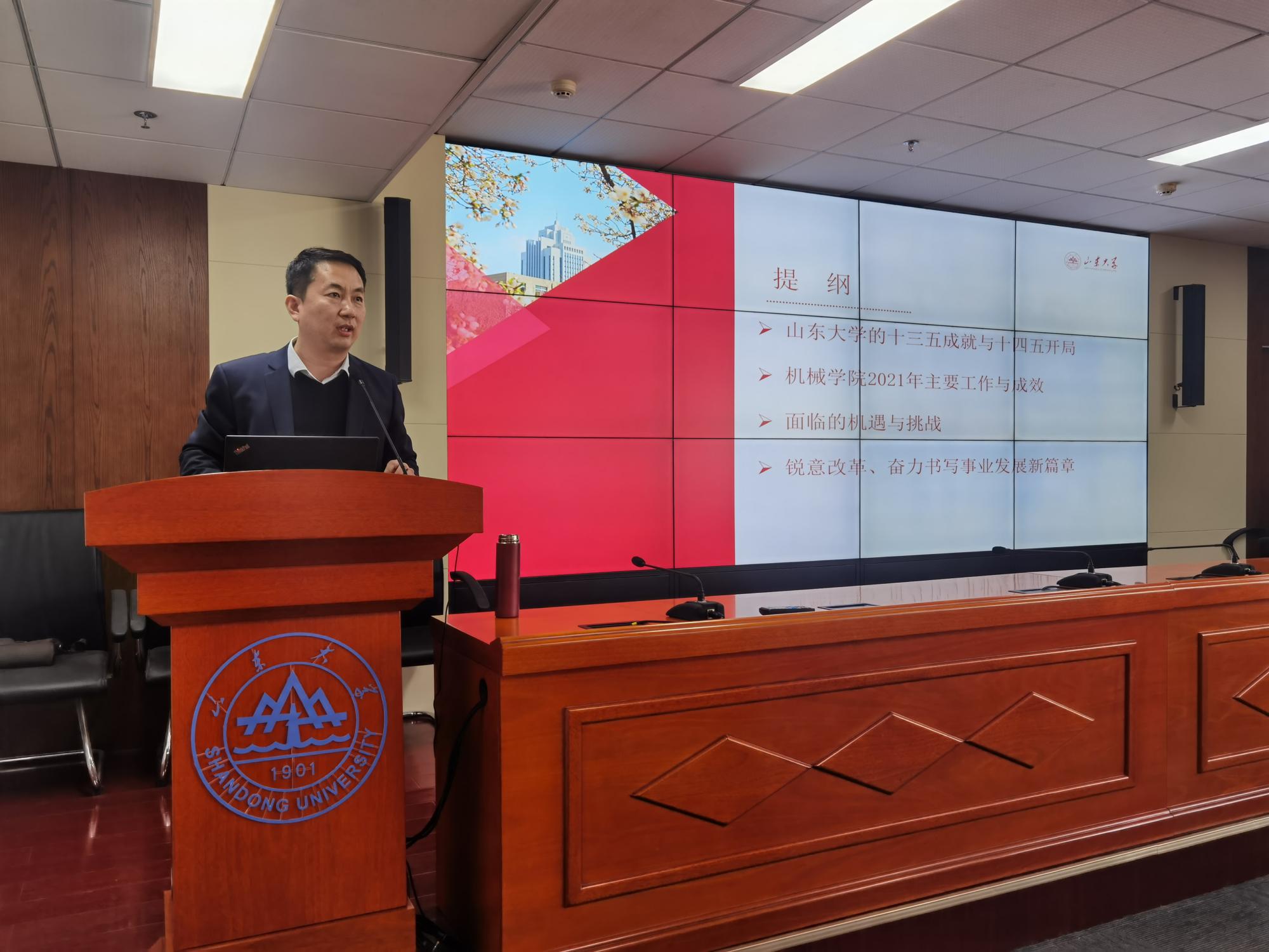 117日下午,机械工程学院在千佛山校区召开全院教职工大会,全面总结2021年工作。会议以全面开启新一轮“双一流”建设新征程为主题,认真总结经验成绩,对标一流查找不足,并对新的一年重点工作进行谋划部署。会议由学院党委书记刘杰主持。