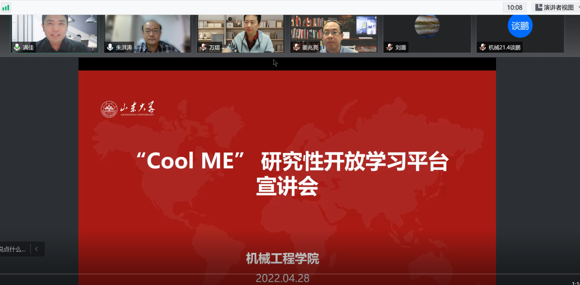 近期,机械工程学院在全面提升线上教学的同时,积极推进学生专业兴趣培养和创新创业活动。作为落实学校“关心关爱学生、提高教书育人”工作的重要举措,机械学院于4月28日晚召开”Cool Me”研究性学习开放平台的成立大会。本科生院副院长姜兆亮教授,机械学院院长万熠教授、副院长朱洪涛教授、17个研究性学习小组的指导老师们和2021级本科生等200余人参加本次活动,会议由满佳老师主持。