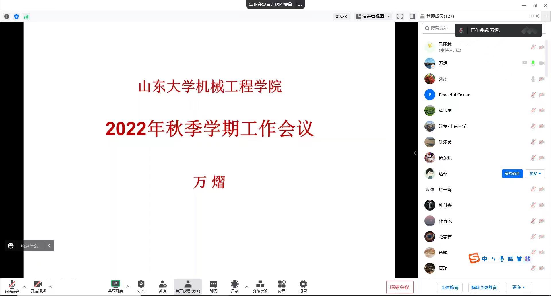 会议首先由万熠院长领学郭新立书记、李术才校长在秋季学期工作会议上的讲话。他强调,全院上下要凝心聚力、精耕细作,在思想和思路上必须要紧扣迎接和学习宣传贯彻党的二十大主题主线,要把握“四点”(重点、难点、薄弱点、风险点)推进的工作思路,要用好“精细”的思维方法,聚焦和对标学校秋季学期9项重点任务,牵住人才培养和学科发展的“牛鼻子”,找准方位、补齐短板、发挥优势,以担当实干推动高质量发展任务落实落地。