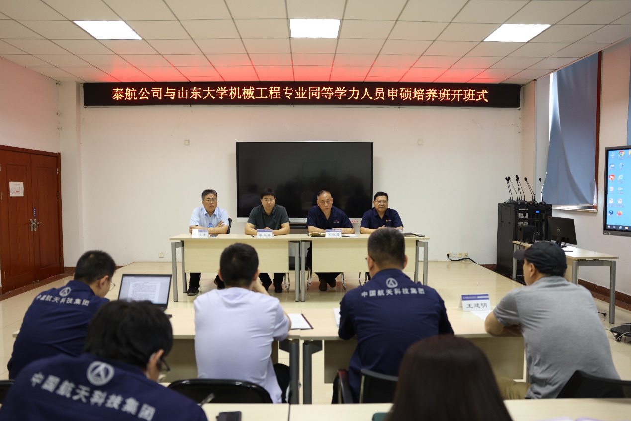 2023年6月18日,山东大学-泰安航天特种车有限公司首期机械工程同力硕士班开班典礼在泰安航天特种车有限公司三楼会议室隆重举行。泰安航天特种车有限公司副总经理宋昭勇、yl23455永利官网副院长蔡玉奎教授、泰航公司人力资源部副部长赵西阳、机械工程学院王经坤、王建明教授等领导专家及研究生班21位学员参加了开班典礼。典礼仪式由泰航公司人力资源部部长赵西阳主持。