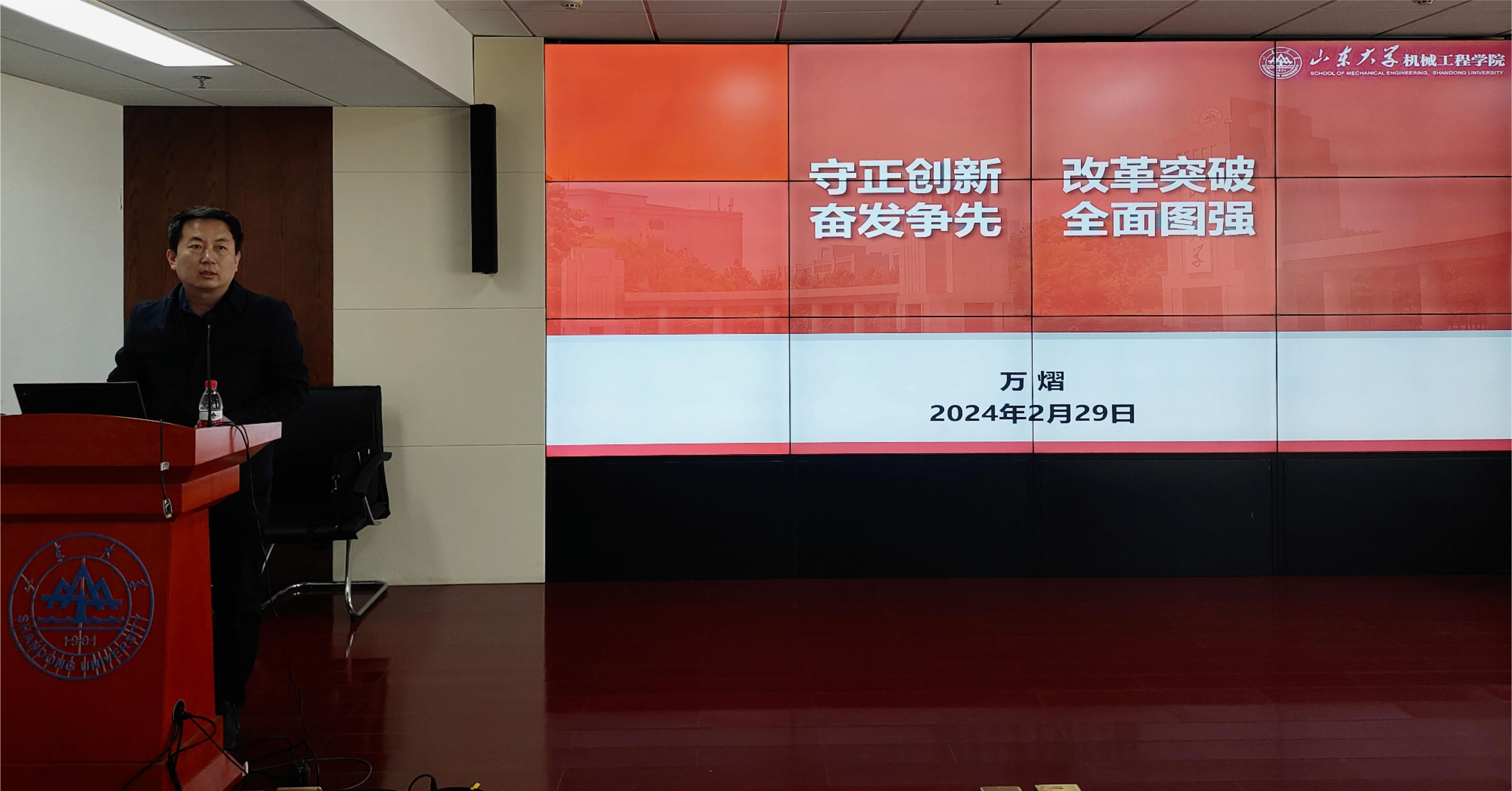 会议强调,做好2024年工作,一是要发挥好党的领导这一最大优势,深刻把握新征程上教育的时代属性,以高质量党建引领高水平事业发展。大力弘扬教育家精神、艾兴精神,强化师德师风建设。二是要落实立德树人根本任务,在全面提升人才自主培养质量、培养造就拔尖创新人才上先行先试。坚持“三全育人”、全面落实“五育并举”,不断创新人才培养模式,完善新工科建设,让广大学子“学在山大,快乐成长”。三是要树牢“大人才观”,着力破解人才短板。围绕主要科研方向加快引育高层次人才、建设高水平团队、产出高质量成果。四是要深化科研创新,强化学科建设,提升学术核心竞争力。高质量建设全国重点实验室、教育部重点实验室,利用好平台优势,加快要素集聚。大力推动学院科研团队建设,凝练主攻方向,开展集中攻关,不断激发科技创新原动力,培育新质生产力,支撑高水平科技自立自强。五是要持续深化交流合作,在服务区域经济社会发展上先行先试。聚焦“四个面向”,贯彻新发展理念,聚焦企业所需、地方所想、机械所能,促进创新链产业链人才链深度融合,不断提高校地企合作的广度、深度。六是要牢固树立以人民为中心的发展思想,深入推进治理体系和治理能力现代化。继续开展为师生办实事活动,切实解决急难愁盼问题。把握龙山校区(创新港)建设重大历史机遇,深入推进资源共享和公房改革,提升管理服务能力,提高资源利用效率。七是要统筹发展和安全,坚持人民至上、生命至上,落实“1+8+8”安全防控体系,织密织牢安全防护网络,为高质量发展提供有力支撑。