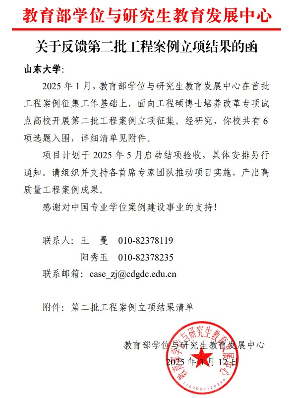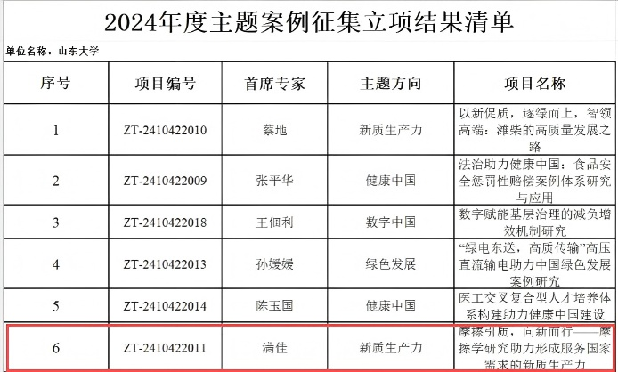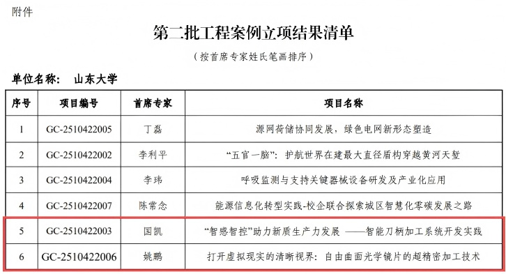 近日,教育部学位与研究生教育发展中心公布2024年度主题案例和第二批工程案例立项结果,山东大学共有12项案例获批立项,机械工程学院在此次评选中成绩斐然,《打开虚拟现实的清晰视界:自由曲面光学镜片的超精密加工技术》《“智感智控”助力新质生产力发展——智能刀柄加工系统开发实践》《摩擦引质,向新而行——摩擦学研究助力形成服务国家需求的新质生产力》3个项目获批立项,首席专家分别为姚鹏、国凯、满佳。