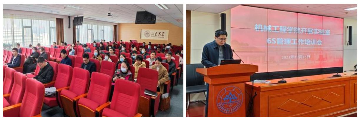 为更好地推进学院实验室6S管理建设工作规范、有序、高效进行,按期完成全院实验室6S管理全面达标,根据《山东大学实验室标准化管理实施细则》要求和学校统一部署,学院于2021年12月15日下午召开了机械工程学院实验室6S管理建设培训会,标志着6S建设工作正式启动。学院副院长贾存栋主持会议并做机械工程学院实验室6S管理工作安排部署,学院实验技术人员梁西昌、杜宜聪老师进行了6S管理工作讲解与经验分享。