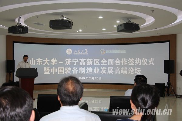 7月20日上午,山东大学-济宁高新区全面合作签约仪式暨中国装备制造业发展高端论坛在济宁高新区人才联盟举行。济宁市委常委、济宁高新区党工委书记白山,山东大学校领导方宏建出席会议并讲话。