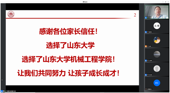 9月4日下午,yl23455永利官网本科2021级新生家长会通过腾讯会议线上顺利召开。机械工程学院常务副院长万熠教授、副院长朱洪涛教授、姚鹏教授等学院领导班子成员、辅导员参加会议,与全体新生家长进行交流。会议由学院党委副书记刘玥主持。2021级新生家长370余名参加了会议。