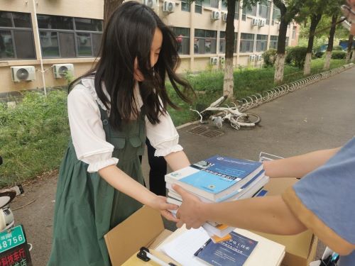 在志愿者们布置好募捐点后,学长学姐们陆续将闲置的学习资料、生活用品等带至募捐点,并为学弟学妹们留下了寄语。本次活动共募集物品八箱,包括教材笔记、考研资料、学习工具、运动器械等。青年志愿服务中心将整理、记录本次募集的物品,并分发给需要的同学。