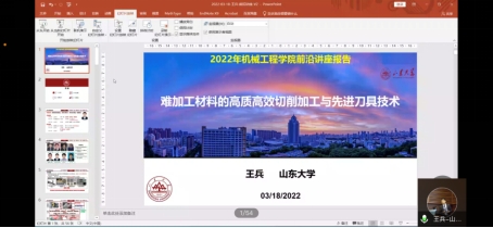 3月18日下午14:00,由机械工程学院举办的研究生第三期“前沿讲座”以线上的形式顺利举行。主讲人王兵教授作了题为“难加工材料的高质高效切削加工与先进刀具技术”的学术报告,部分老师和硕博研究生聆听了此次讲座。
