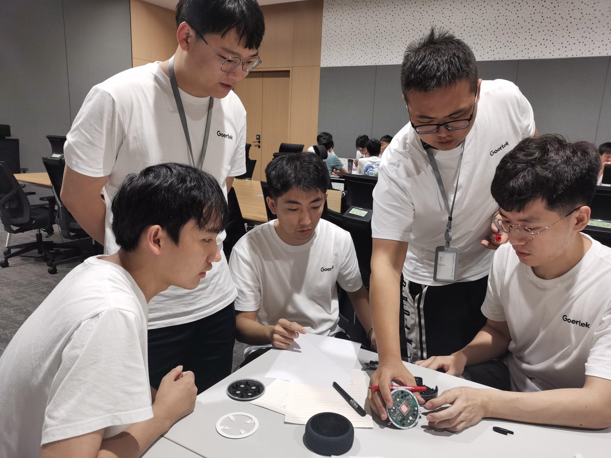 机械工程学院歌尔暑期训练营第五天,营员们在歌尔研发部门侯老师和单老师的教学指导下正式进行了第一天的项目课题模拟。