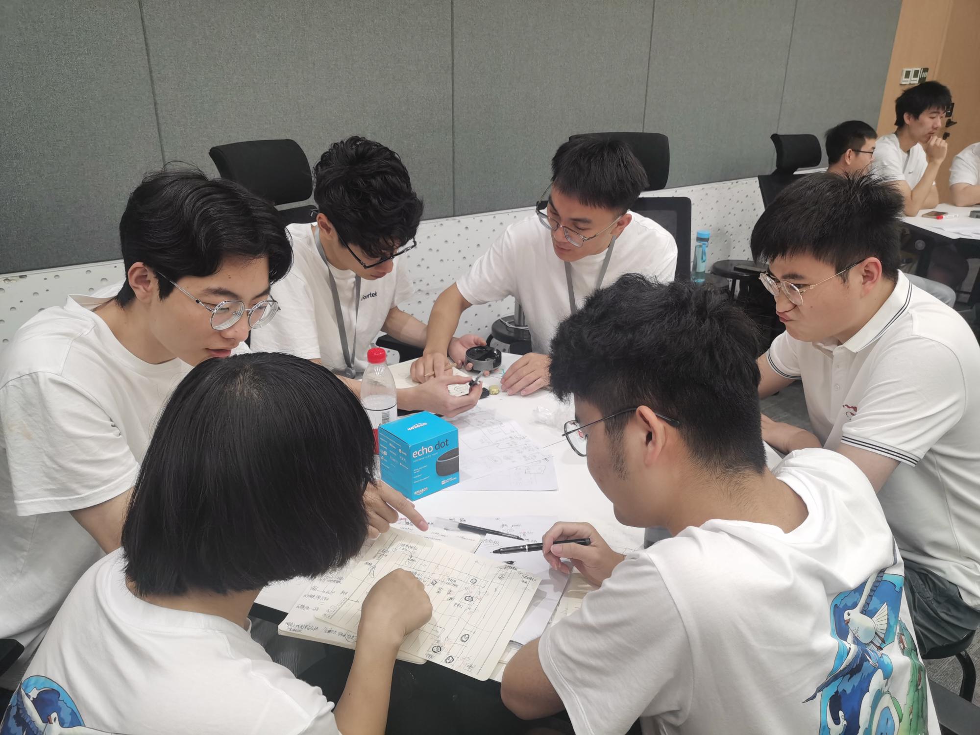 机械工程学院歌尔暑期夏令营项目课题模拟进入第三天,经过车间参观研习,营员们对实际生产线作业有了清晰的认知,并对智能音响生产线的初步设计方案进行了补充完善