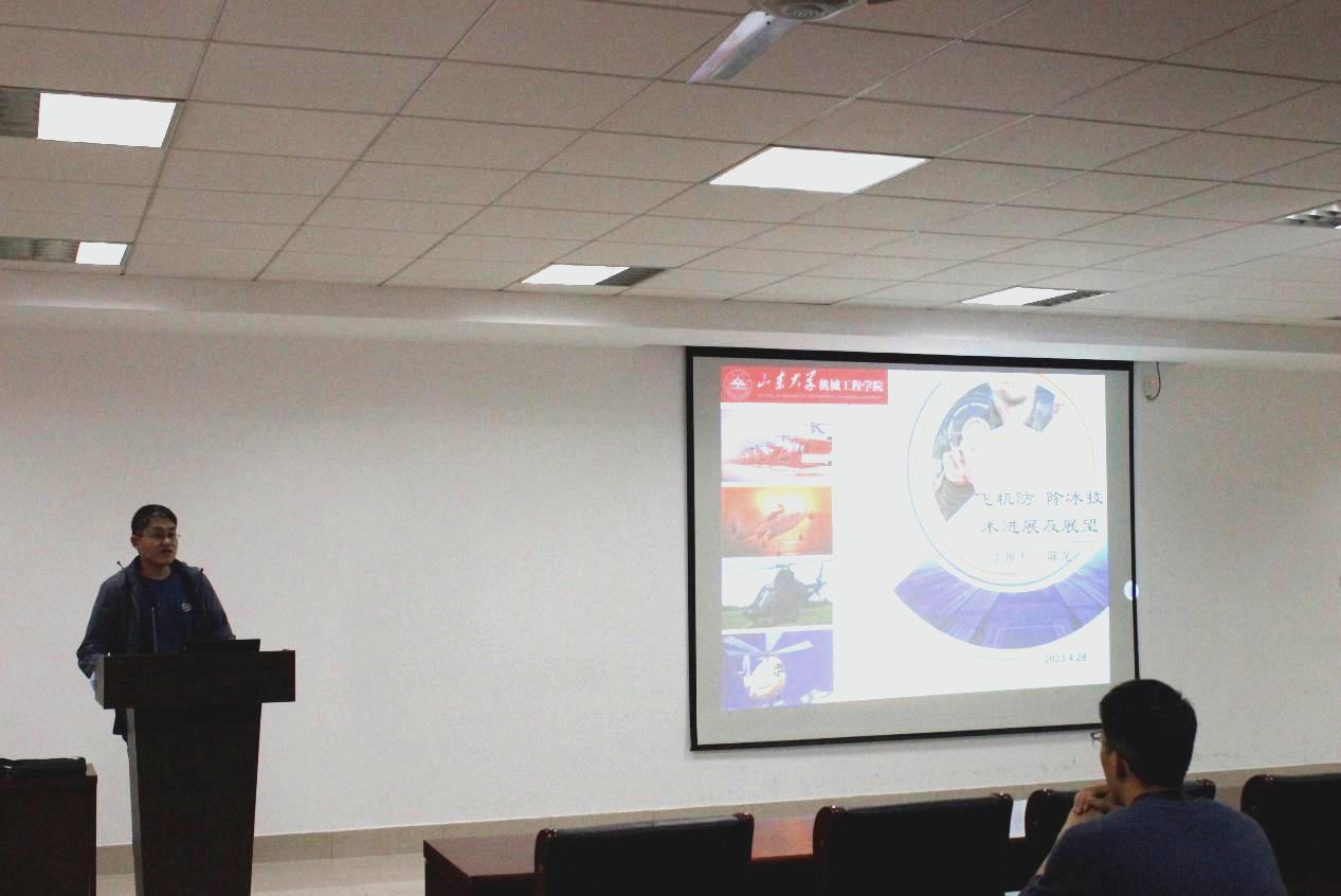2023年4月28日下午2点,由机械工程学院举办的研究生第四期“前沿讲座”在千佛山校区8号楼516举行。陈龙副教授作了题为“飞机防/除冰技术进展及展望”的学术讲座,部分机械工程学院老师与硕博研究生参加了本次讲座。