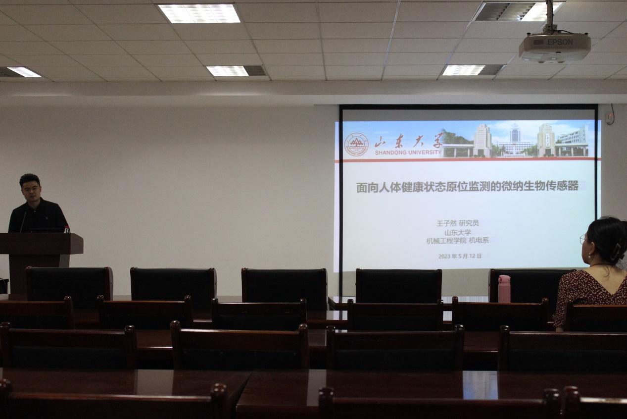 2023年5月12日上午9点半,由机械工程学院举办的研究生第六期“前沿讲座”在千佛山校区8号楼516举行。王子然研究员作了题为“面向人体健康状态原位监测的微纳生物传感器”的学术讲座,机械工程学院部分硕博研究生参加了本次讲座。