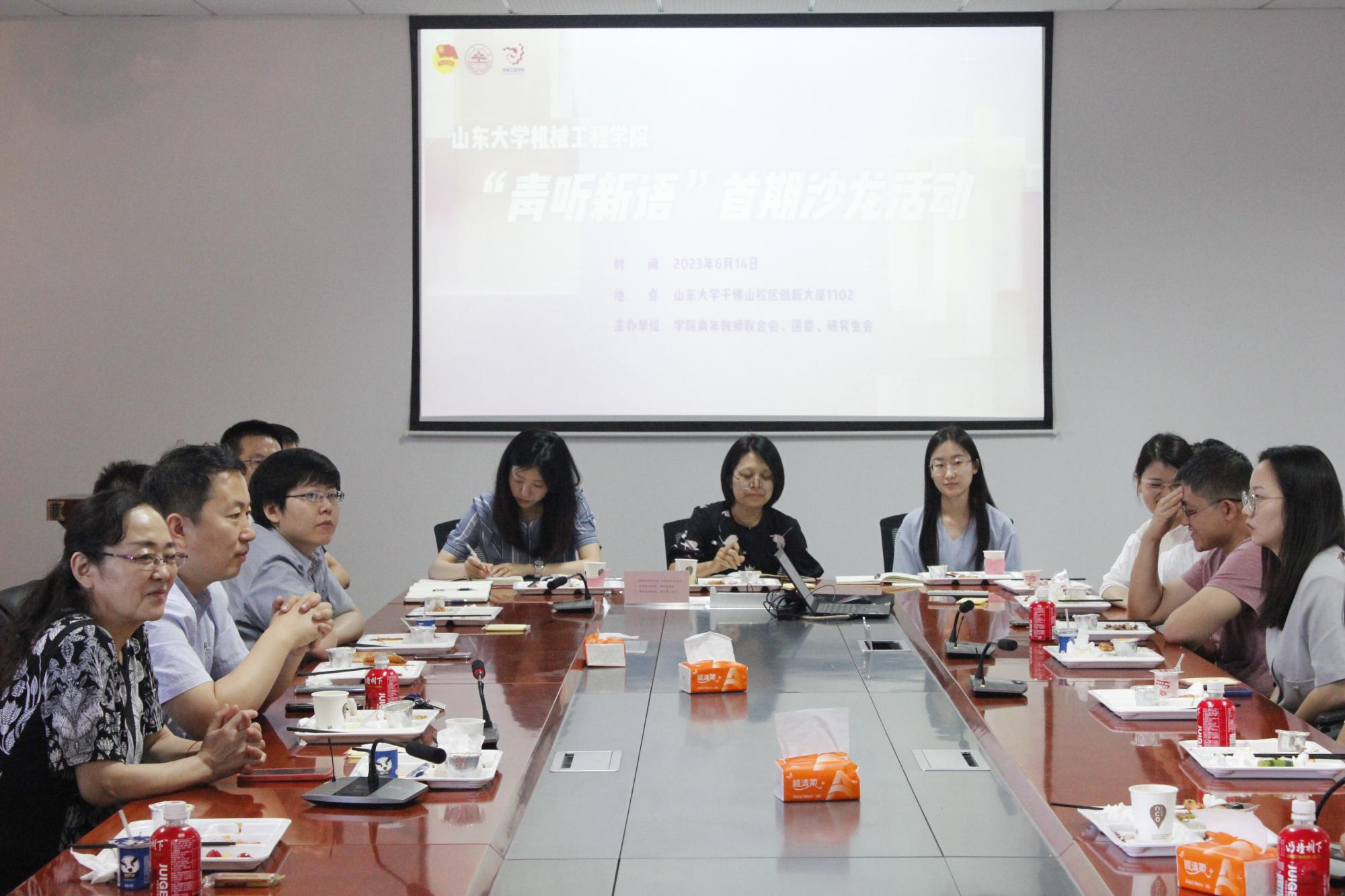 2023年6月14日,机械工程学院于创新大厦1102、1103举办了“青听新语”系列首期沙龙活动。本次活动由学院青年教师联合会、团委、研究生会共同承办,机械工程学院党委书记刘杰,院长万熠,副院长姚鹏,山东大学国际事务部副部长张佳琦以及学院部分青年教师出席本次活动。