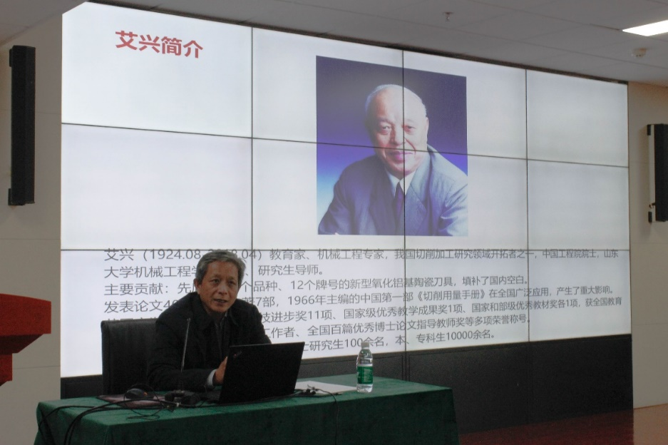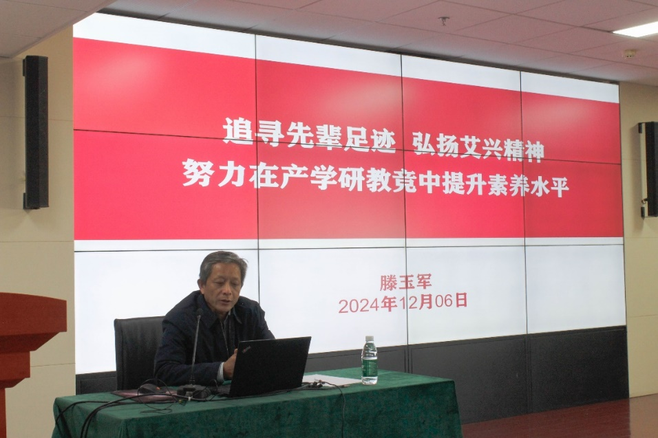 滕玉军首先对艾兴教授的生平事迹和学术成就进行了详细介绍,强调了艾兴精神对于学院发展和师生成长的重要意义。他指出,艾兴院士不仅是一位杰出的科学家,更是一位潜心治学、崇实笃行的教育家,他留下的的艾兴精神更是机械工程学院的宝贵财富,是激励师生不断前行的强大动力。