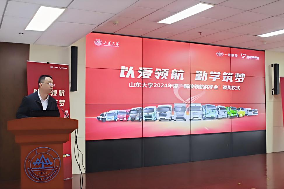 3月11日,山东大学一汽解放座谈会暨“解放领航”奖学金颁奖仪式在千佛山校区创新大厦圆满举行。校企双方就人才培养、产学研融合等议题深入交流,并共同见证24名优秀学子荣获“解放领航”奖学金。