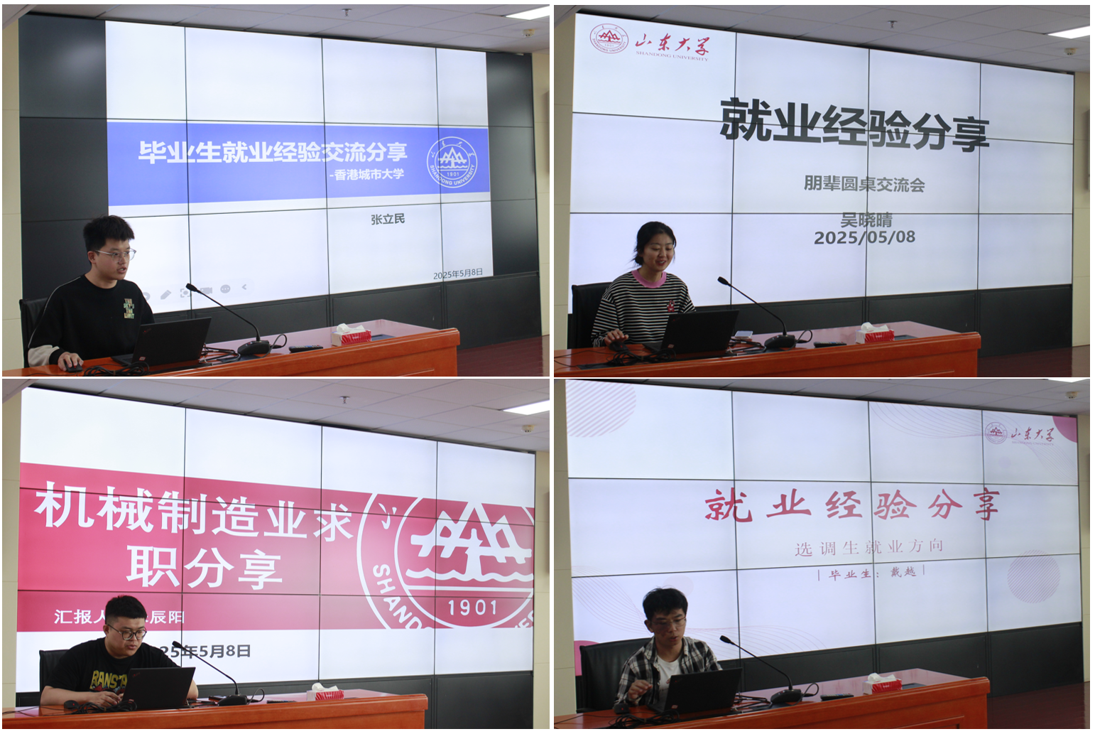 为进一步提高研究生职业规划意识、提升就业竞争力,5月8日上午9时,机械工程学院在千佛山校区创新大厦1103室举办2025届毕业生就业经验分享会暨就业指导会。本次分享会邀请了八名不同去向的优秀代表分别分享自己在求职、考公、申博过程中的经验和心得。研究生辅导员宋小霞结合2025届毕业生就业情况做出简要指导和说明,学院2023级、2024级研究生参加了分享会。