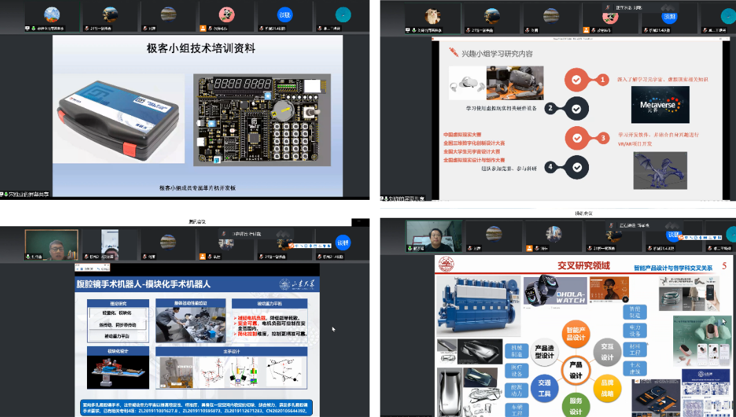 加盟Cool ME”平台的团队中,有些团队前期已开展了相应的工作。如“极客小组”已开发了自主产权的开发板,“机器人总动员”已研发出了第二代模块化机器人。有些团队与相关企业开展了合作,如“最强大脑”与华天软件合作,致力于自主工业软件的学习与推广,“天演之道”与安世亚太合作专研工业仿真技术。有些团队则具有鲜明的专业方向特色,如“天工开物”、“炫动”是典型的“艺工交叉”特色团队,意图通过学生的作品充分展现“机械美学”的魅力,“我爱飞翔”和“蚂蚁搬家”则是以无人机、AGV群控为技术亮点。